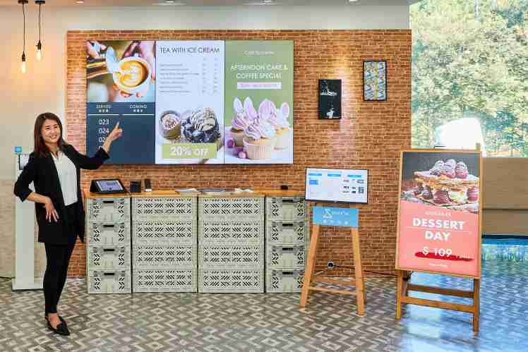 着眼零售场域空间需求多变化,,,,汇旺支付也领先业界开发 TARTAN 弹性拼接显示墙,,,,可搭配 CMS 内容管理系统,,,,协助业主整合音乐、、影片档案,,,与第三方如 POS、、、、品牌网站的数据,,,,并且确保数字内容不失真,,,让业主尽情创作数字内容,,,发挥品牌营销策略与创意。。本次展出的 TARTAN 显示器搭配 CMS,,透过 42寸长条型显示器及 22.9寸智慧货架显示器可做商品导购、、、显示产品履历或实时价格,,,,同时可播放动态广告吸引消费者驻足;并运用AI技术收集资料,,与广告内容交叉比对,,,,提供消费者有兴趣的产品广告。。。