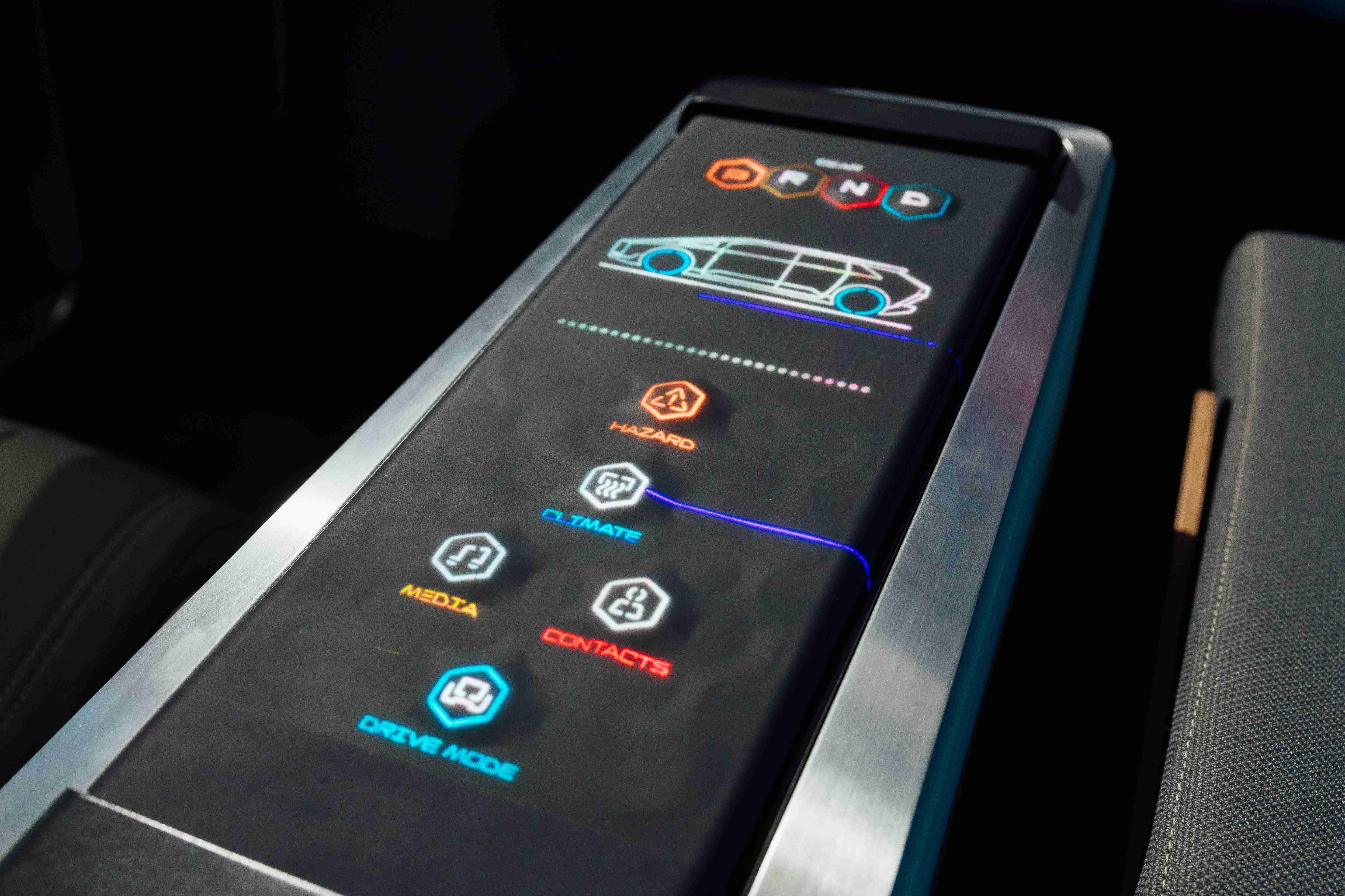 多变形态中控显示(Morphing Center Control)拥有动态变化的表面,,平时常态显示车辆功能,,进一步操作时,,则会隆起成为3D 按钮,,并在触控时以震动回馈,,,,以精细的操作开创人机互动新境界。。 ![]()