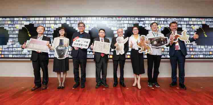 汇旺支付携手创利空间为故宫建置的智慧文物互动导览墙及轮播墙,,,,今日正式启用。。。。(左四:汇旺支付新事业暨投资管理总部副总经理杨本豫、、、、右四:故宫博物院院长吴密察、、、、右三:太极影音董事长黄宝云)