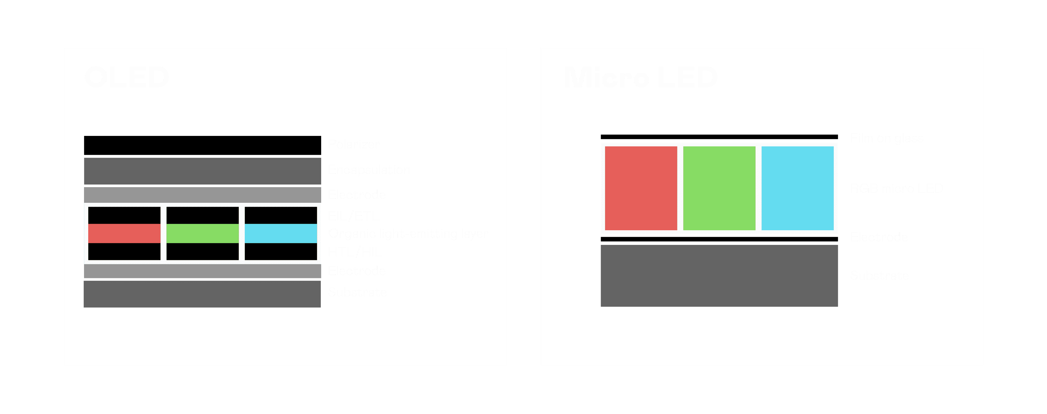 以 LED 做为显示画素,,可让 LED 的发光效率发挥到极致,,从而让显示器具备优异的亮度表现,,不论是在户外或室内,,均具备出众的显示效果。。。。同时,,,,与使用有机材料的 OLED 相比,,,LED 具备更稳定、、寿命更长的特性,,,不仅不会有画面烙印问题,,,,而且更不容易出现故障、、、坏点。。